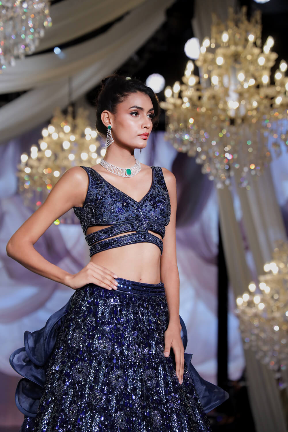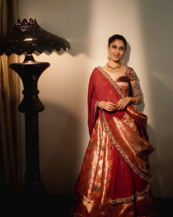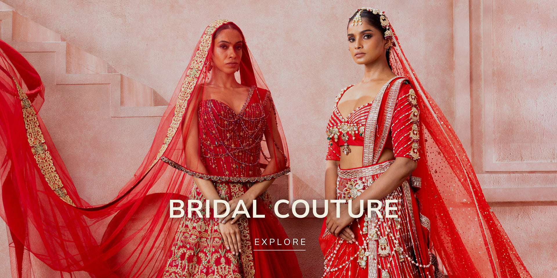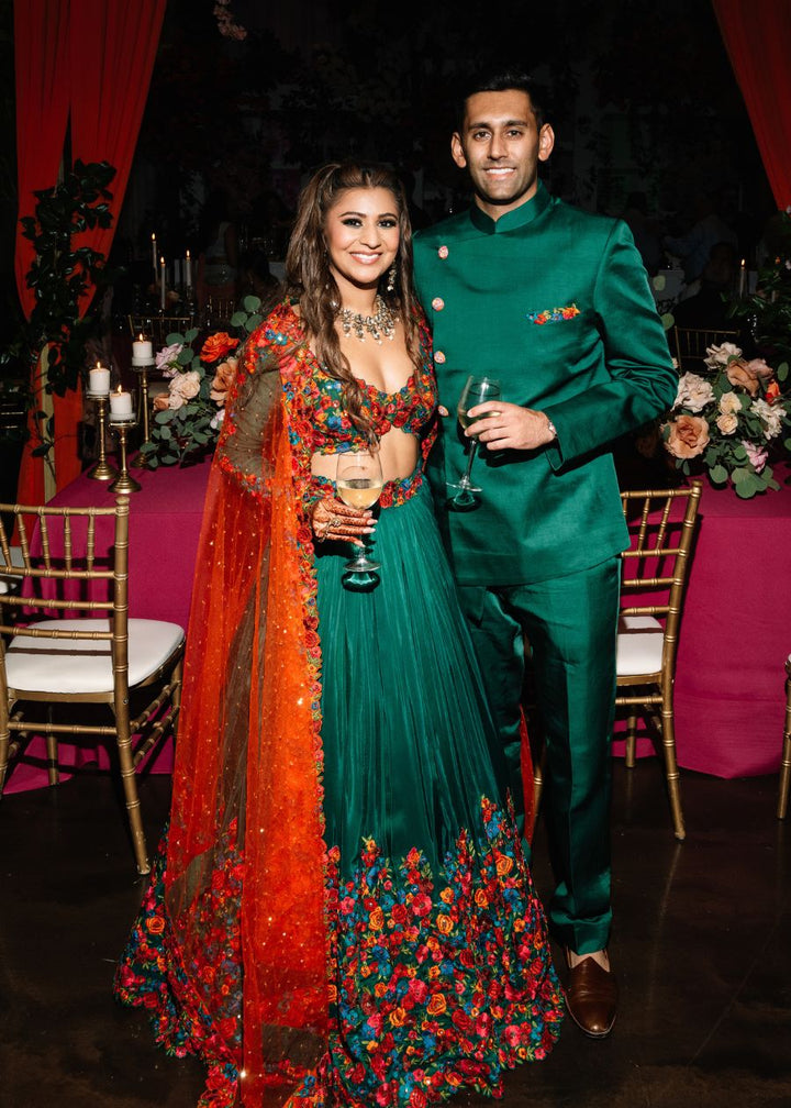 With a fusion of contemporary and heritage elements, these bespoke designs blend elegant silhouettes with vibrant Indian craftsmanship, perfect for those seeking exclusivity and timeless style for their special day.