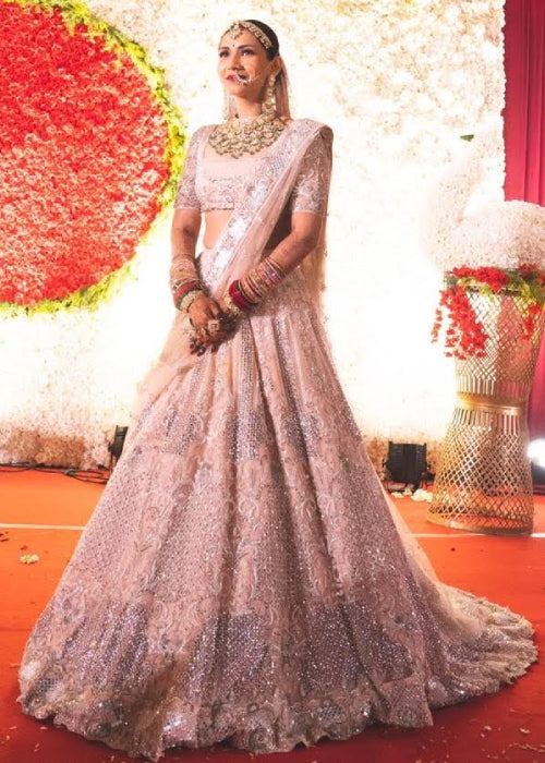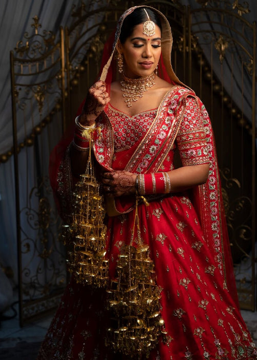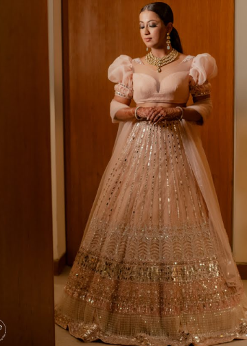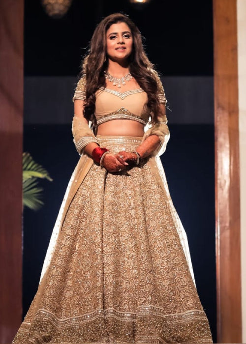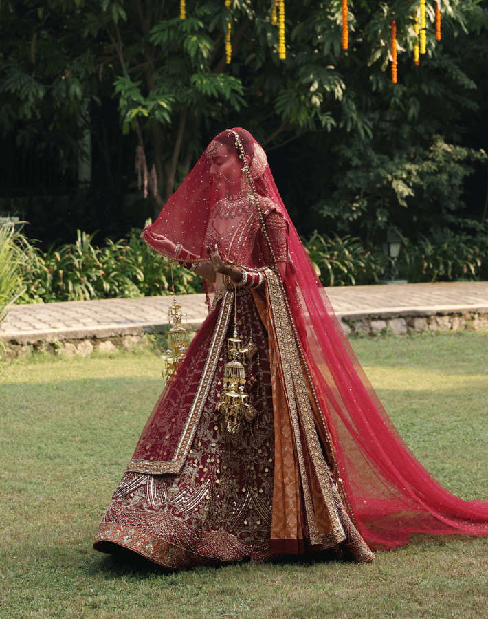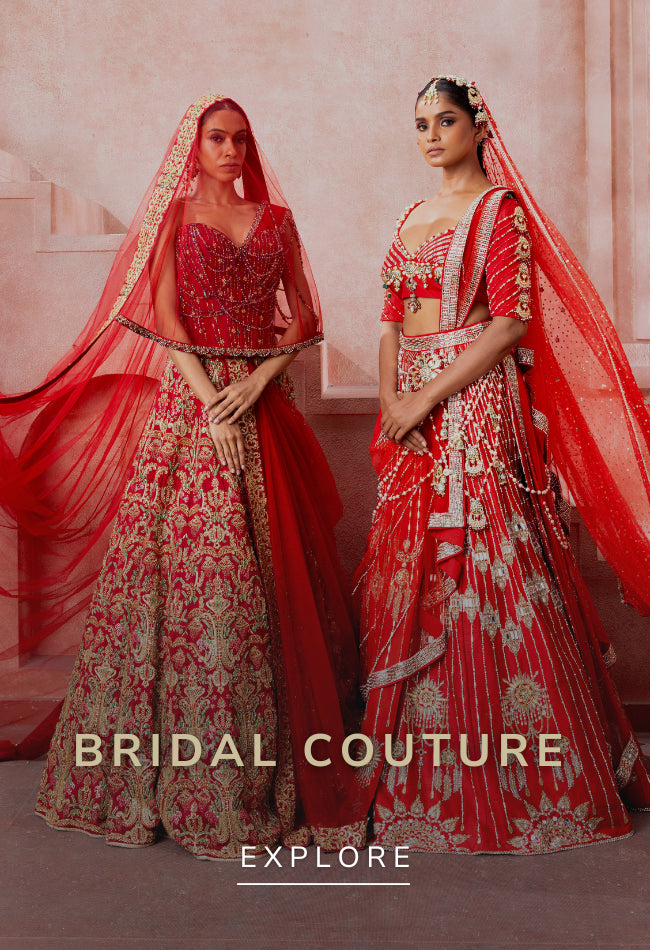 Neeta Lulla's Bespoke Services offer brides and grooms the chance to experience custom couture, designed through one-on-one appointments with the designer herself. Each piece is meticulously crafted using traditional embroidery and luxurious fabrics, tailored to individual preferences for weddings, receptions, and more.