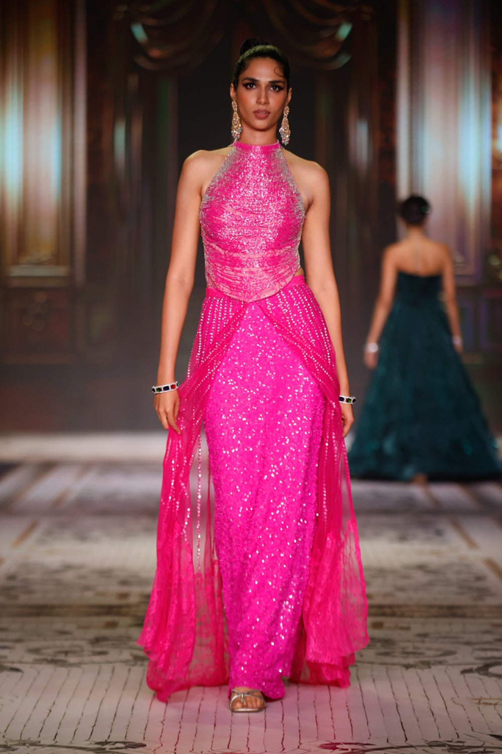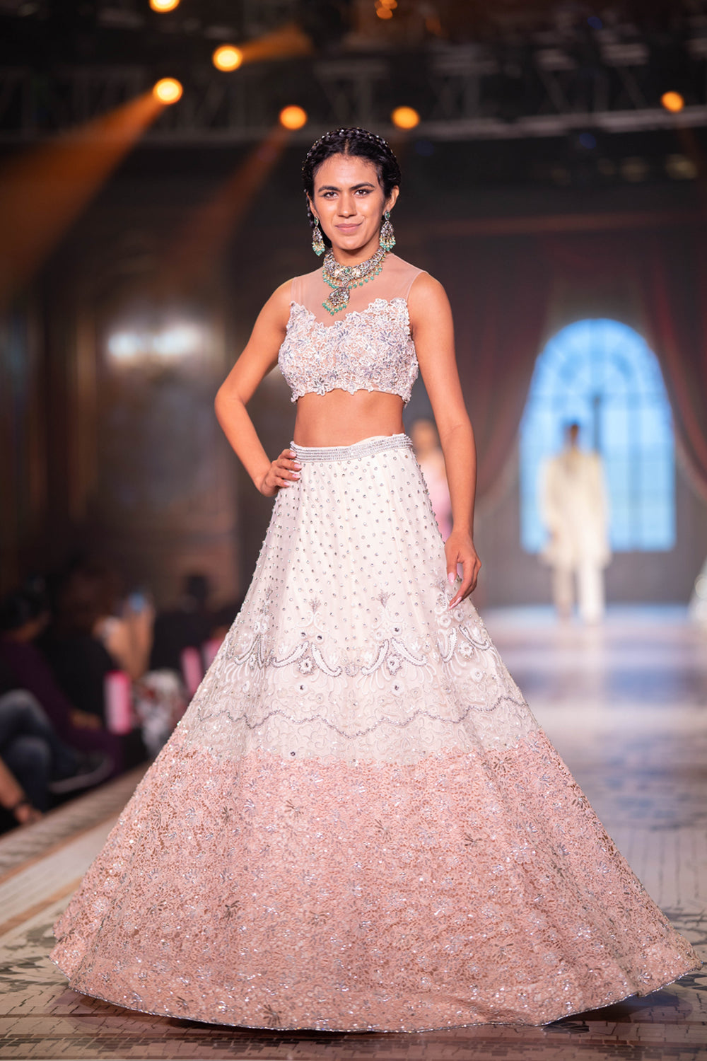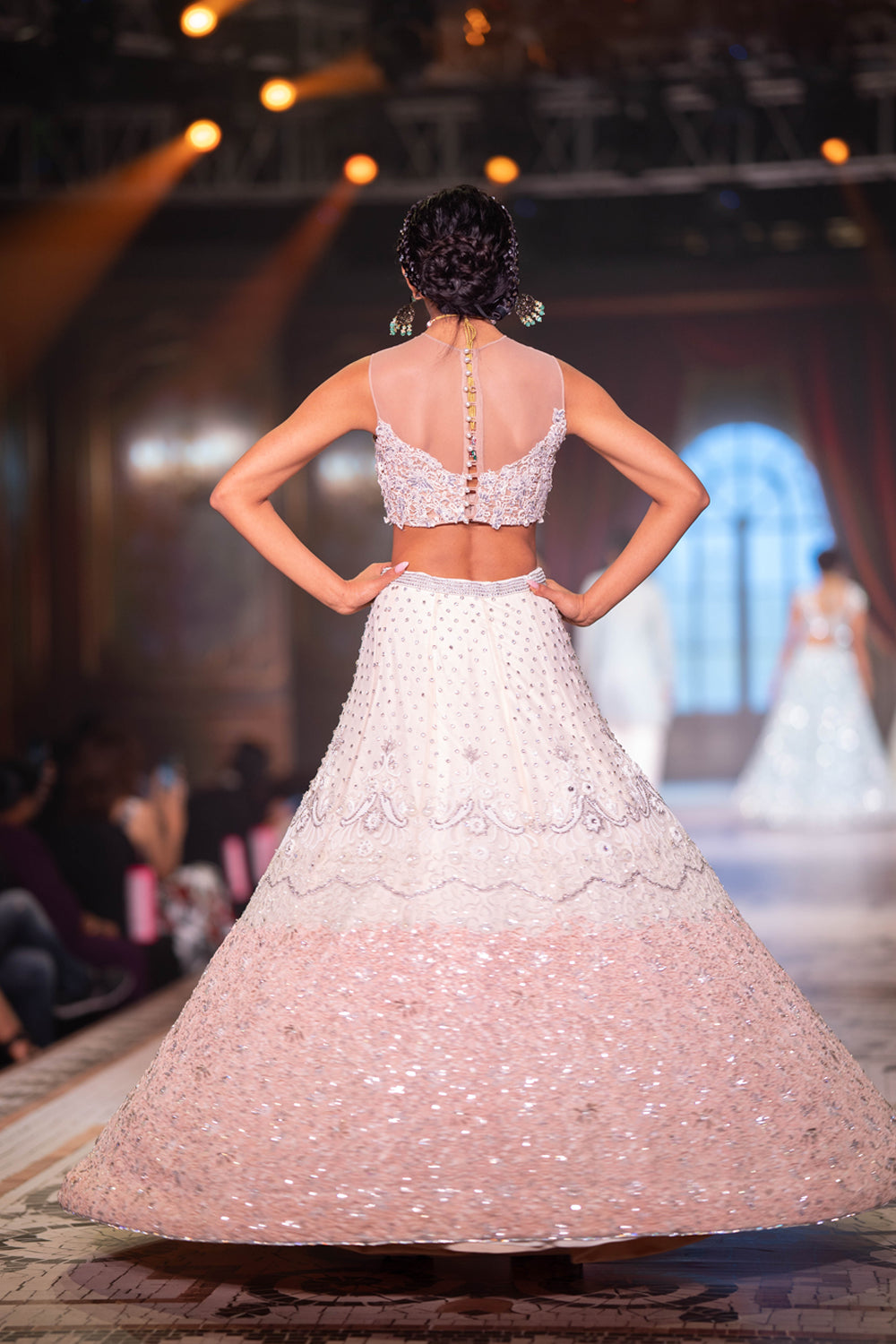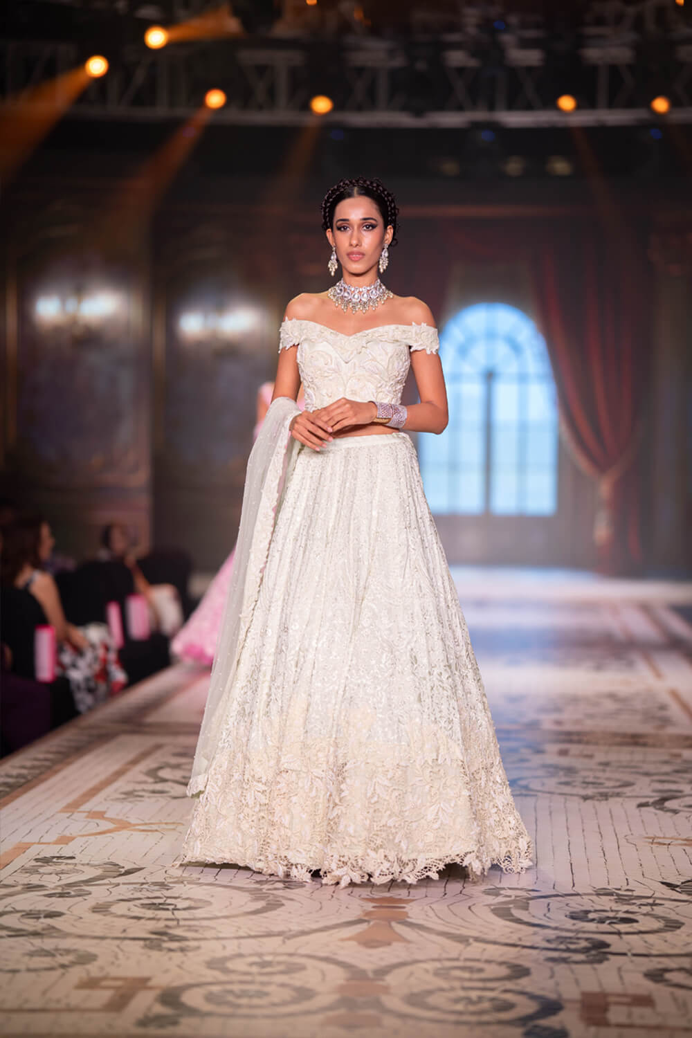 With a fusion of contemporary and heritage elements, these bespoke designs blend elegant silhouettes with vibrant Indian craftsmanship, perfect for those seeking exclusivity and timeless style for their special day.