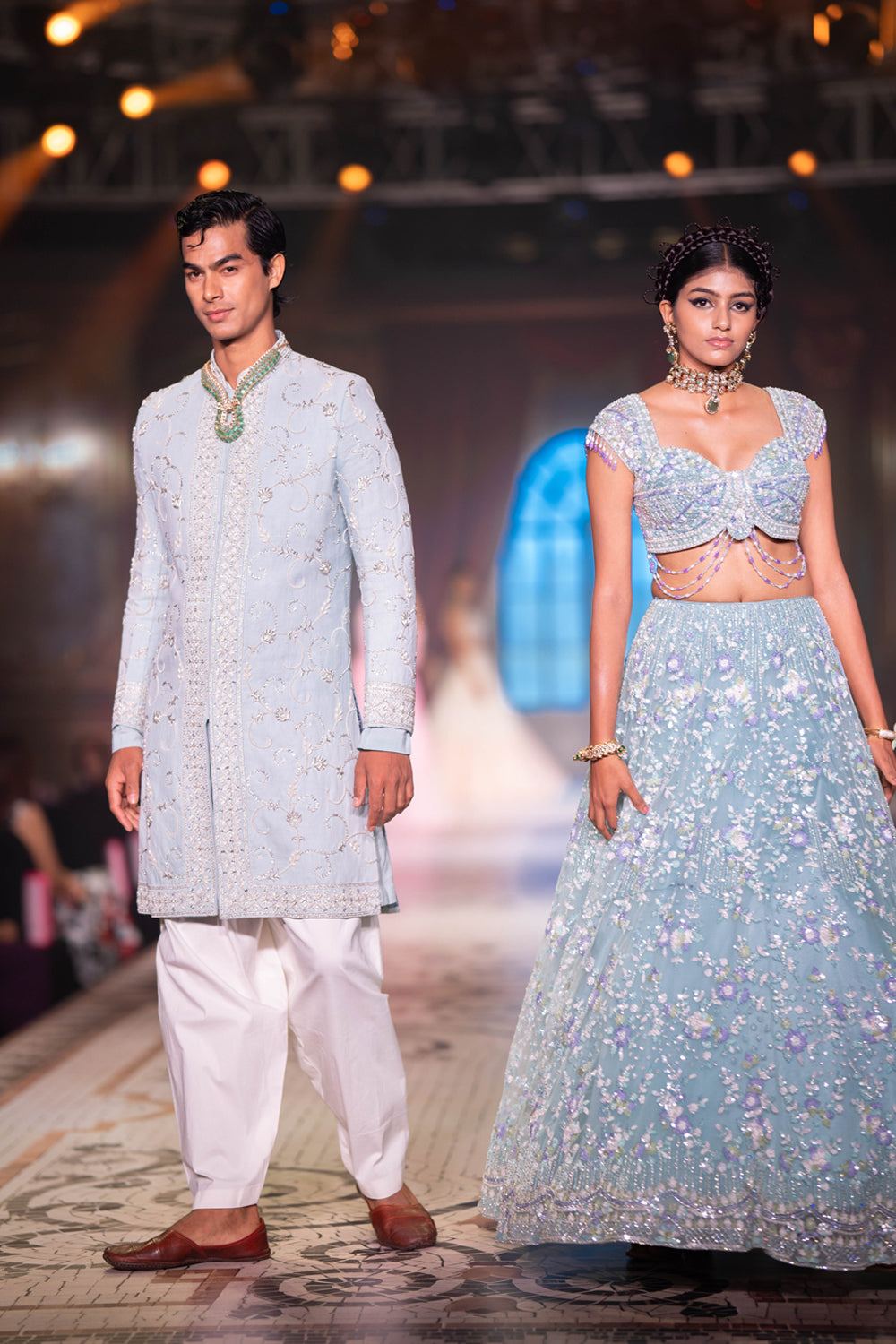 Neeta Lulla’s menswear collection combines traditional elegance with contemporary design, offering luxurious attire that suits both modern and classic tastes. Featuring rich fabrics and refined detailing, each piece reflects craftsmanship ideal for weddings, festive occasions, and formal gatherings.