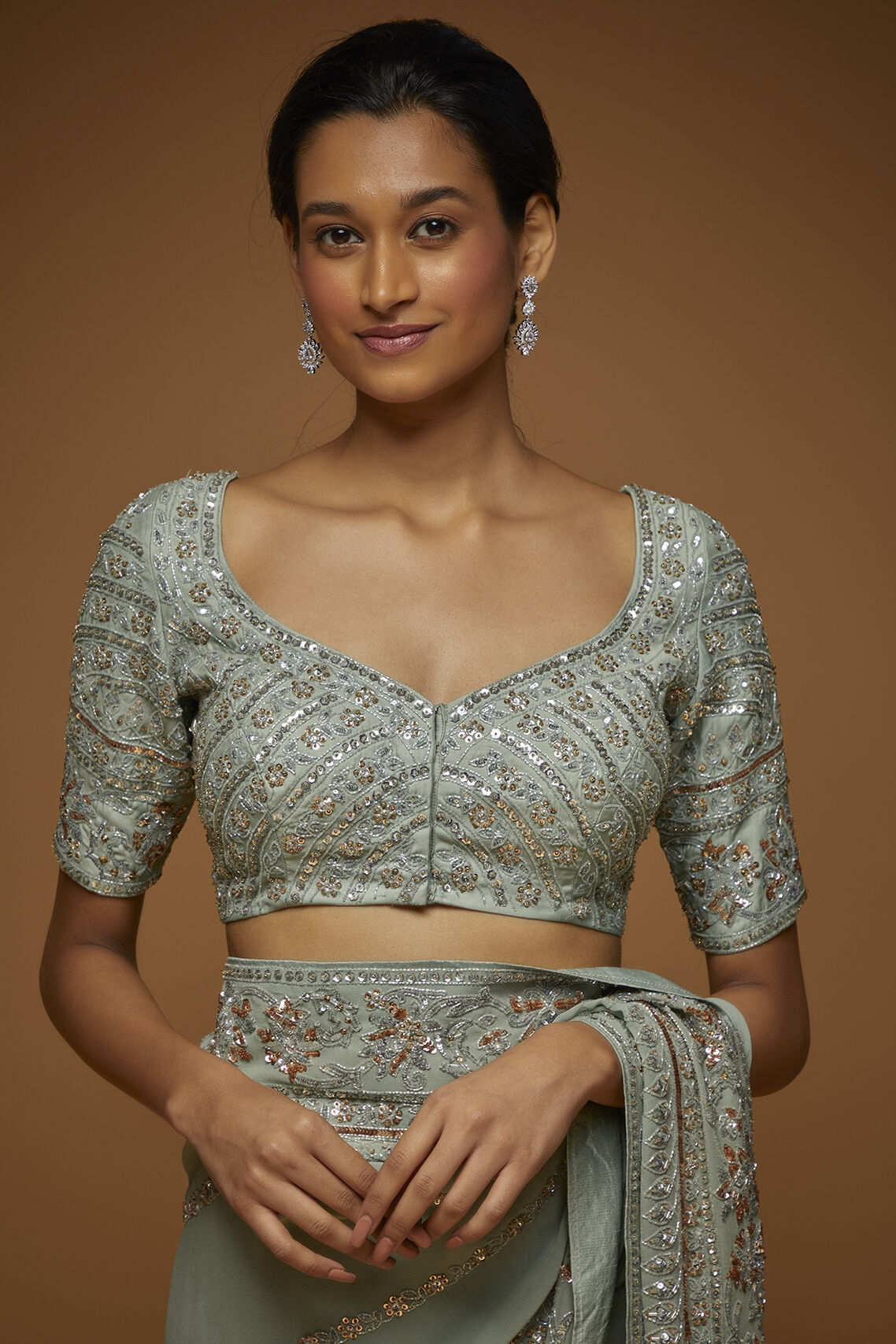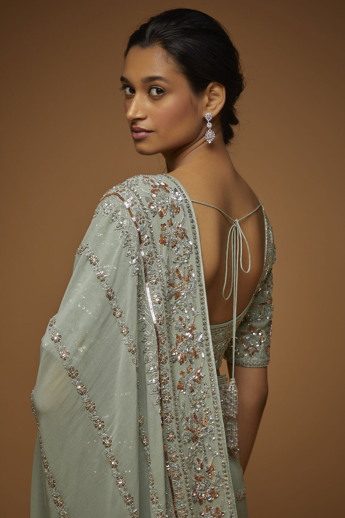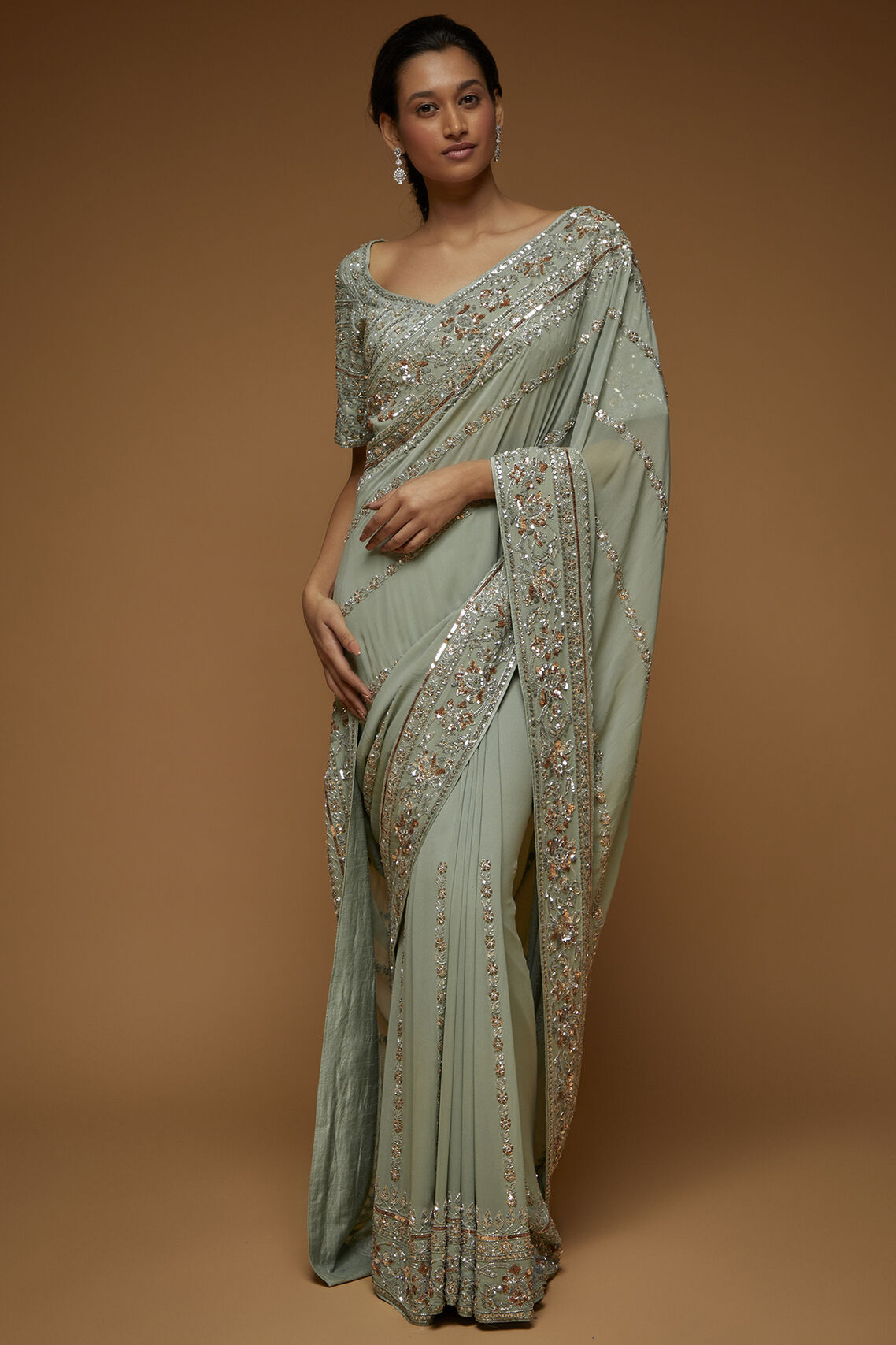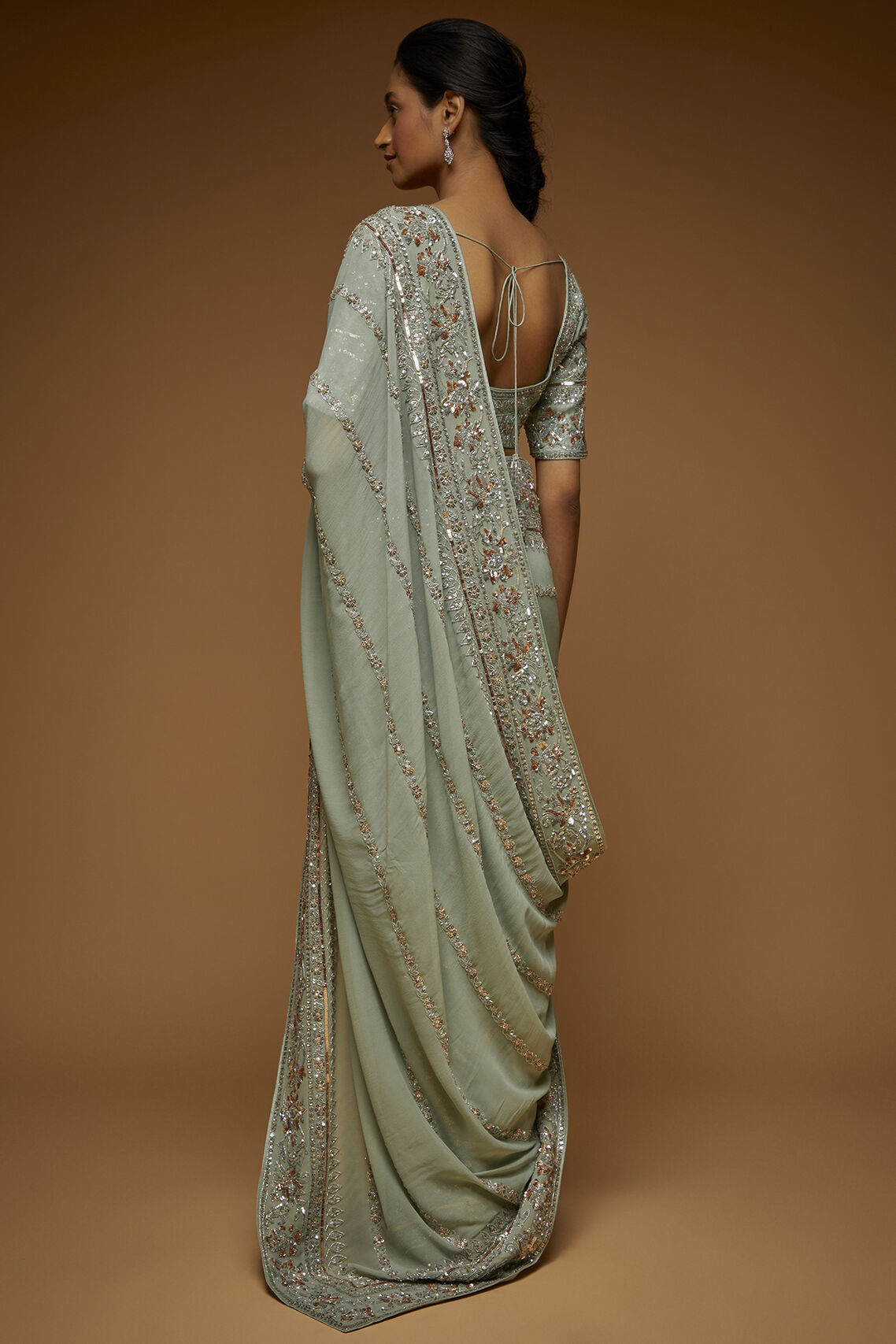 Bay green Anahita saree embroidered in Katdana and sequin work with blouse fully embroidered.